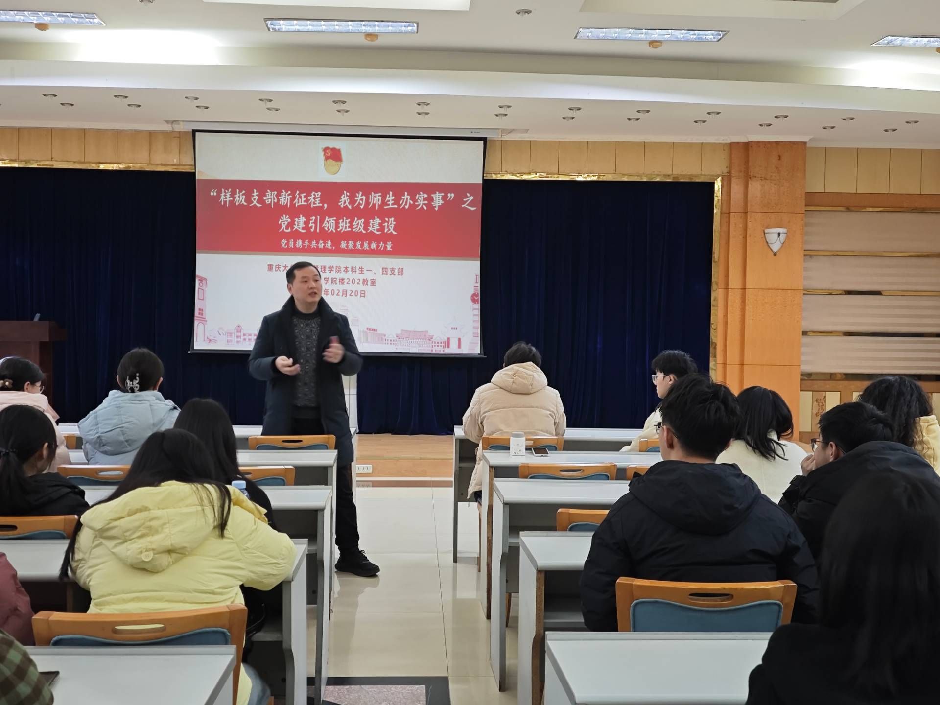 本科生一四支部在学院202多功能会议厅举办“样板支部新征程,我为学生办实事”之“党建引领班级建设”活动。本次活动邀请班主任,经济系副教授周洲老师主讲,2022级经济学1班全体预备党员、入党积极分子、共青团员积极参与。