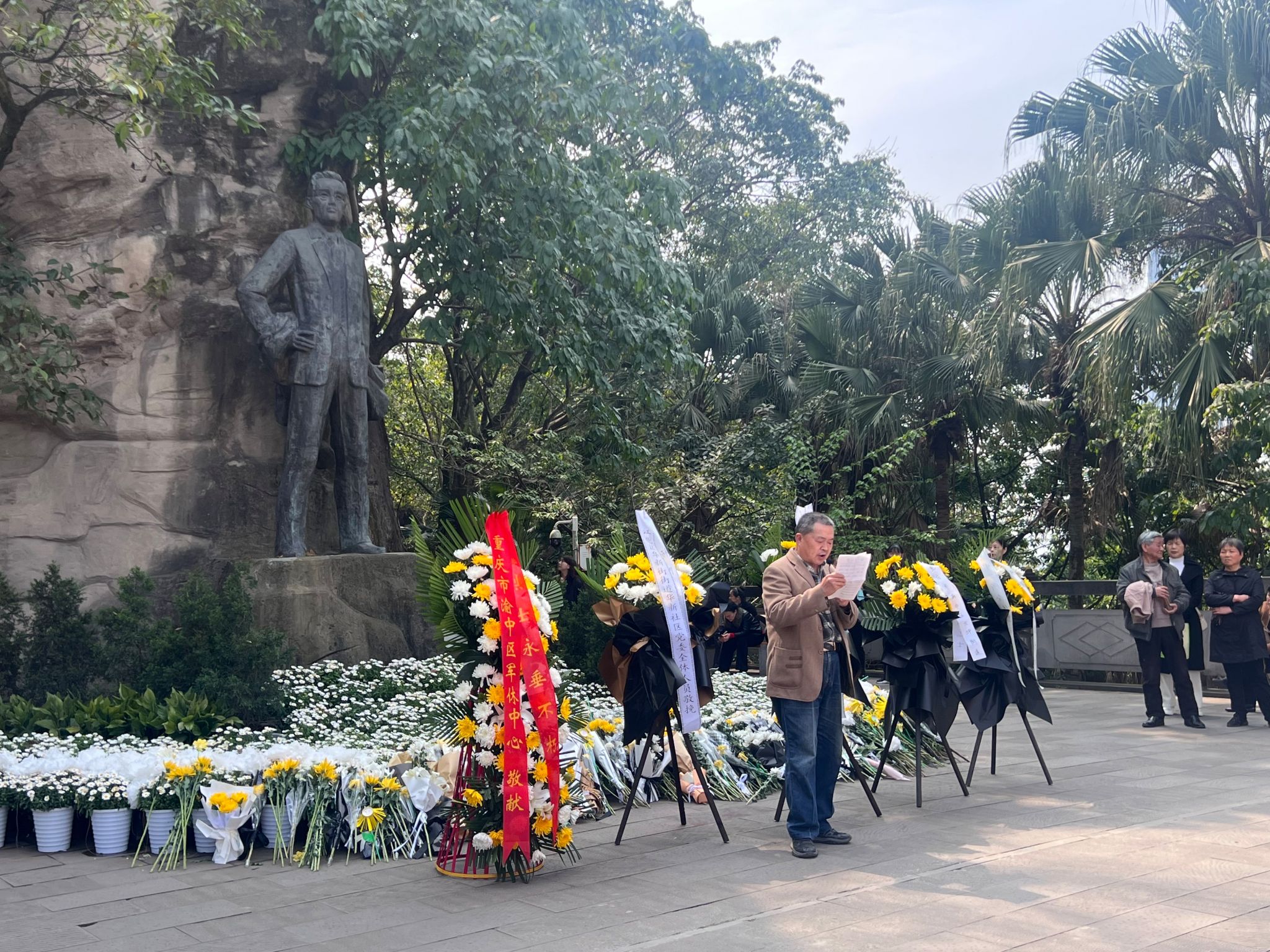 最后,学院党委组织委员唐方利老师在铜像前发言作结,他希望所有的学生党员和团员青年都能以先烈风骨为镜,让红色基因在时代浪潮中生生不息。
