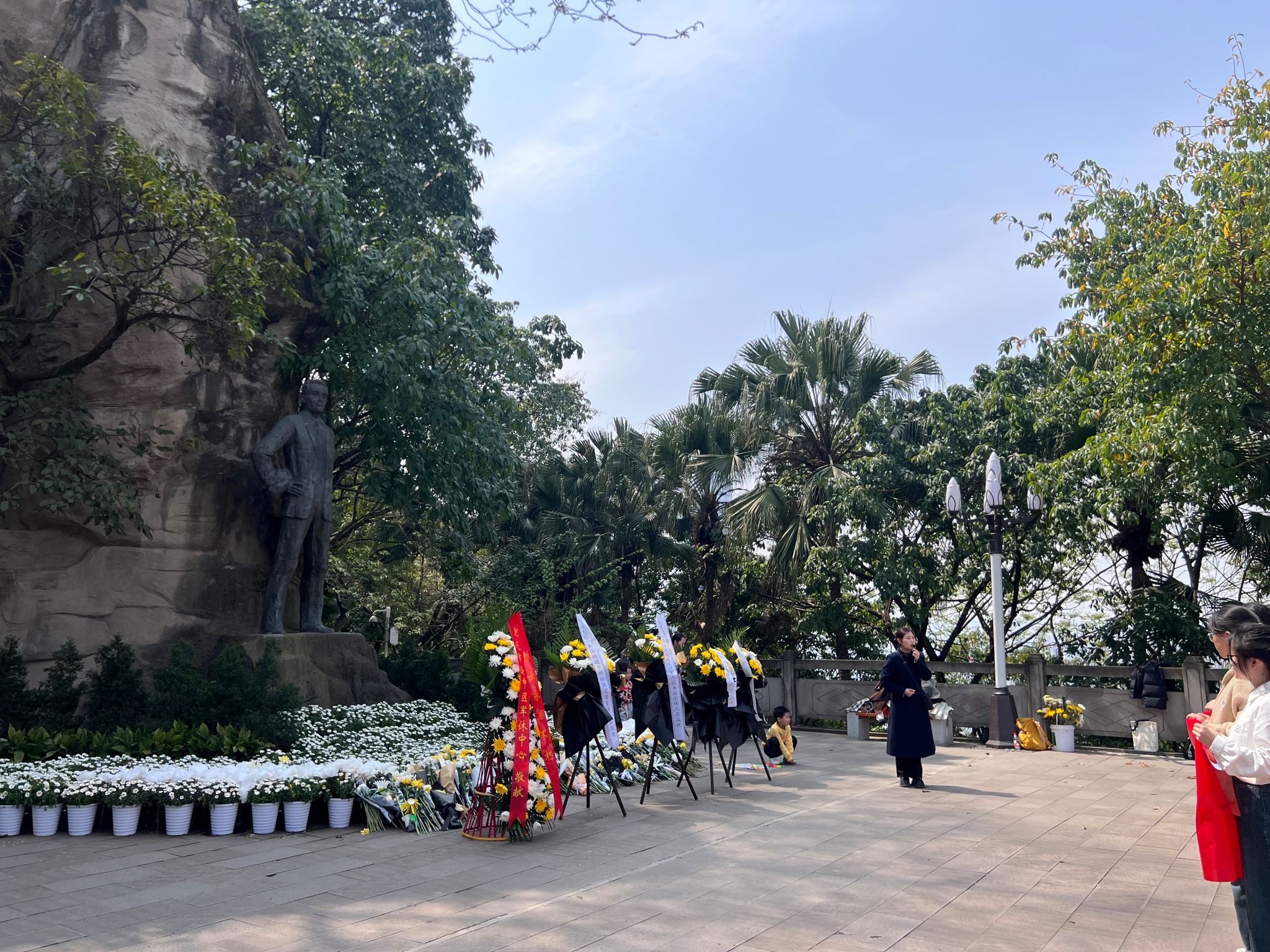 宣誓声久久回荡在陵园上空,展现了公管学子传承红色基因、勇担时代使命的决心。宣誓后,全体师生怀着崇高的敬意,为英烈铜像献上手中的鲜花,朵朵素花寄托着哀思,更承载着传承先烈遗志的郑重承诺。