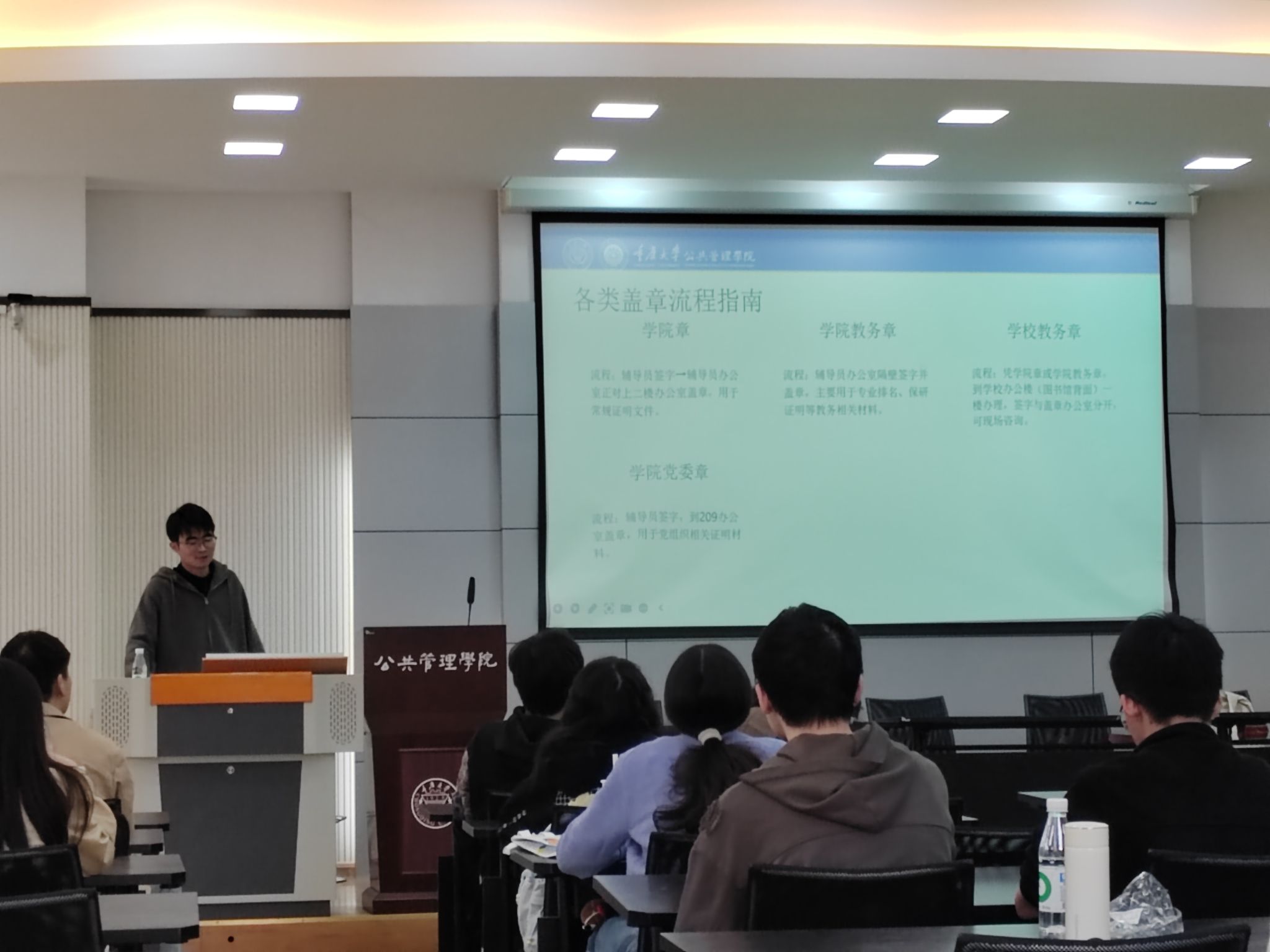保研的学长学姐不仅向大家分享了如何在简历中展现自己的优势、个性的展现,还分享了如何筛选与自己预期相符的学校等宝贵经验。除此之外,徐琪琦学姐还分析了推免的背景形势,通过已推免的实战经验,提醒同学们结合职业规划、院校专业特色与自身优势进行匹配,融入自己的真情实感对文书材料进行准备。梁家辉学长则聚焦保研事务需求,提供各类相关盖章流程指南,清晰解答同学们“不知在哪盖章”的实际疑惑,助力申请材料办理,节约同学们的时间。
