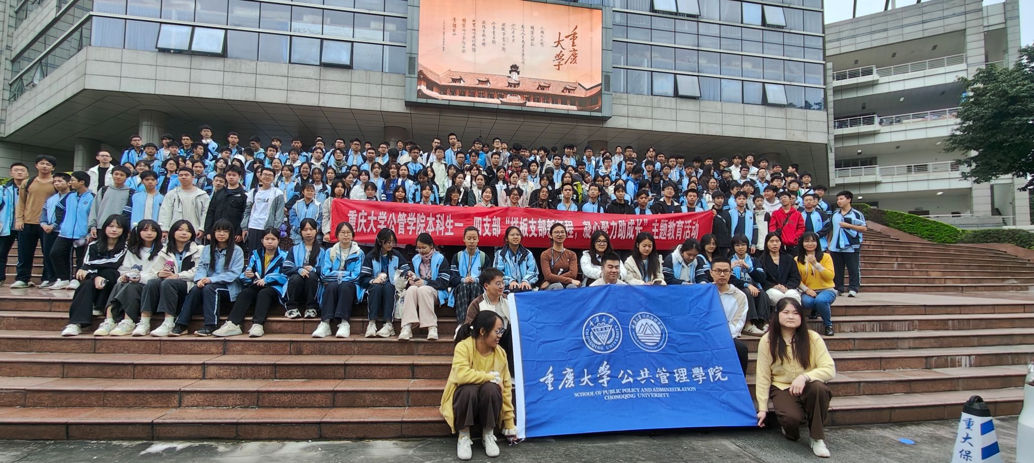 本次活动在重庆大学A区钟塔拉开序幕。南宁三中的师生们抵达后,迅速分配小组带领对应的班级。活动伊始,王丽娟同志及一、四支部的成员们为远道而来的南宁三中研学团队表达了热烈而真挚的欢迎之情,并介绍了活动的流程:校园参观、集体合影、参观深空探测联合研究中心及食堂共进午餐。